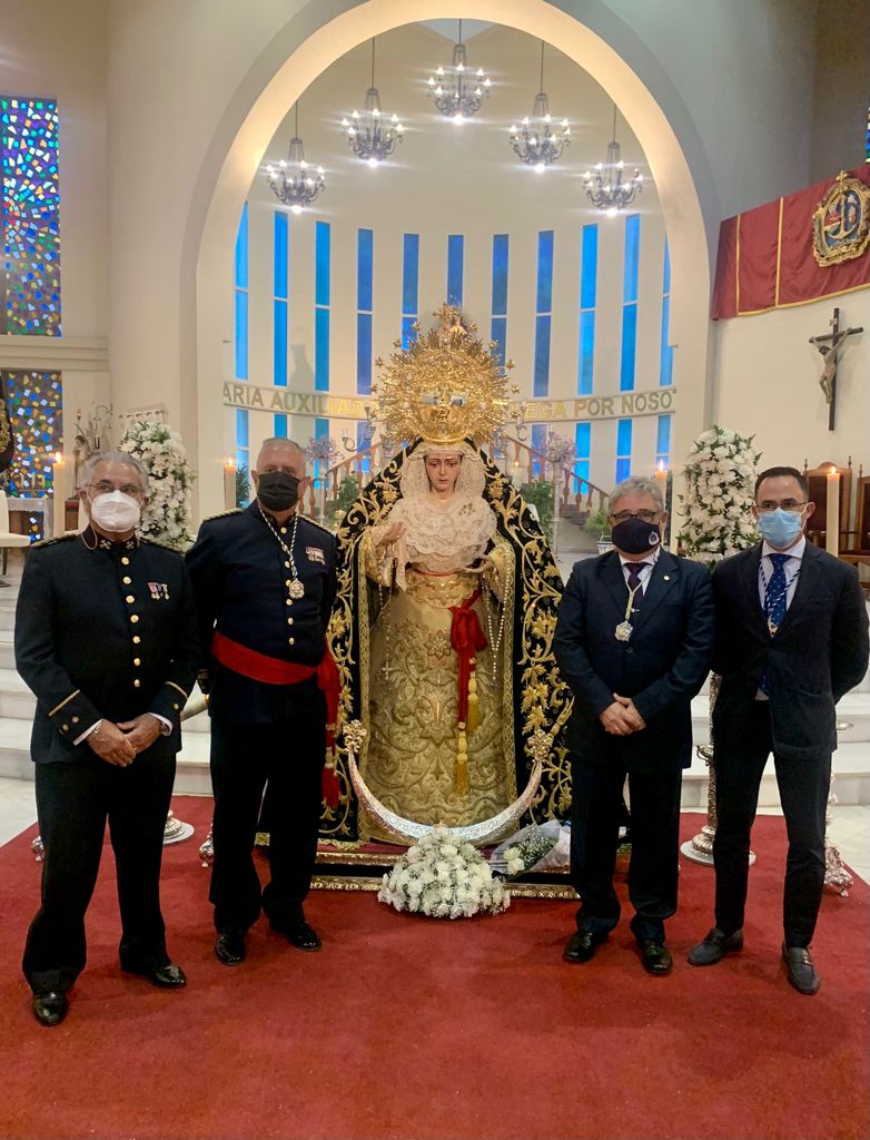 El presidente del consejo D. Dionisio Díaz acompañado de varios consejeros, han acudido en la tarde de ayer viernes 18 de Junio al Santuario de María Auxiliadora, donde ha tenido lugar la imposición del fajín del General Brigada de Caballería Exmo. Sr. D. Juan Antonio Fernández Calleja a María Santísima Madre de la Iglesia.